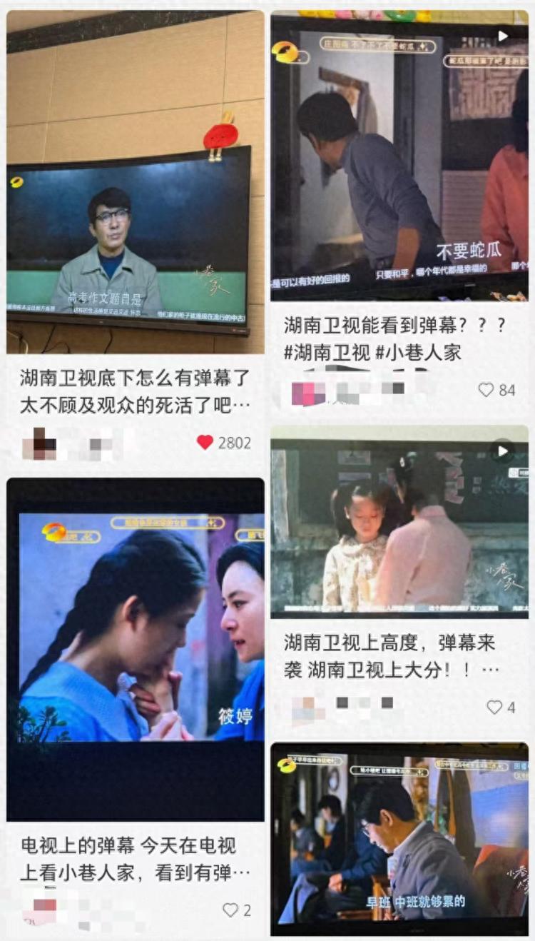 “第一次在电视上见到弹幕!”近日,有观众在社交平台上反映,在通过广电信号观看湖南卫视时,在金鹰独播剧场《小巷人家》播放中,发现有类似电脑端上的弹幕在屏幕上飘过。上游新闻记者在网友拍摄的图片和视频中看到,这些弹幕主要是在屏幕下部,主要是观众对剧情、演员的评论,还有一些弹幕会像视频网站的弹幕一样,出现在屏幕上半部分并有线框做提示。