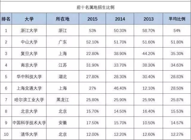 从13-14-15年的数据来看,尤其浙江大学、中山大学,每年招生计划中,超过50%的名额是给到自己所在省份的。