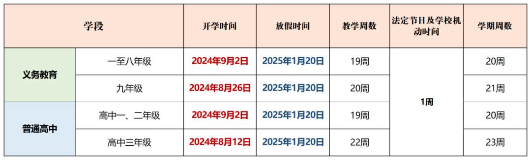 2.非义务教育阶段学校:普通高中一、二年级2024年9月2日,普通高中三年级2024年8月12日。