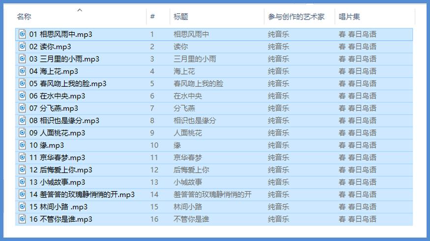 大家知道,正规的MP3歌曲文件名中应该包含有唱片集、艺术家、标题等与歌曲有关的属性,这些信息以MP3 ID3标签的形式与MP3文件合并保存。平常我们可能只能看到歌曲文件的文件名而看不到标签,如果在Windows 8.1或Windows 10环境下,将文件显示方式切换为“详细信息”,则可以看到这些标签。