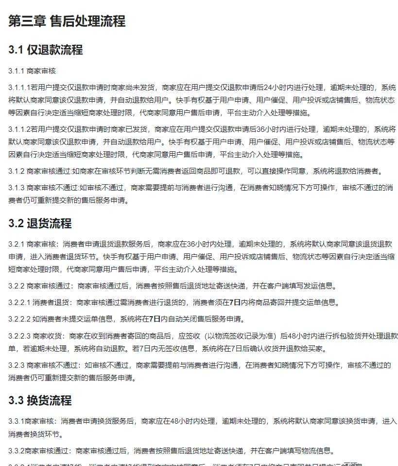 而最近发布《快手小店售后服务管理规则》中的“仅退款”条款,仍然存在。