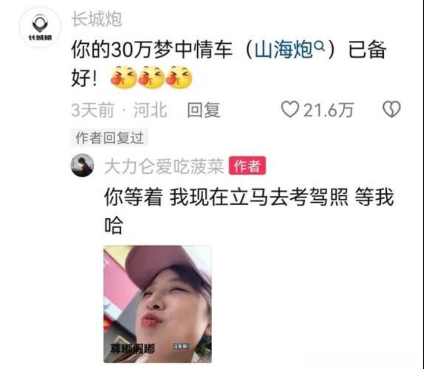 于是网友纷纷猜测是不是长城汽车送不起,现在看到大力仑没有热度了之后,就又要把汽车要回去?