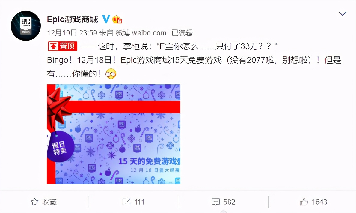 由Epic官宣确认:从12月18日起,也就是这个周五开始,Epic每天都会给玩家免费送出一款游戏,每天都有喜加一。