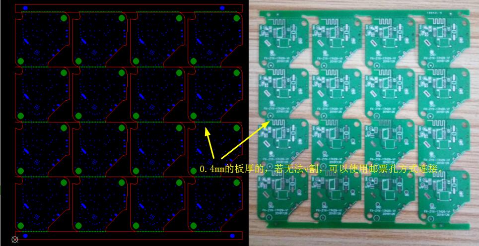 温馨提示:在不影响v-cut的情况下,拼板考虑面积最小化,充分利用空间,可以旋转、倒扣拼、加邮票孔连接(无法v割的地方,或减少v割刀数)。在v形槽附件的走线,请控制好安全距离,避免v-cut伤线漏铜。