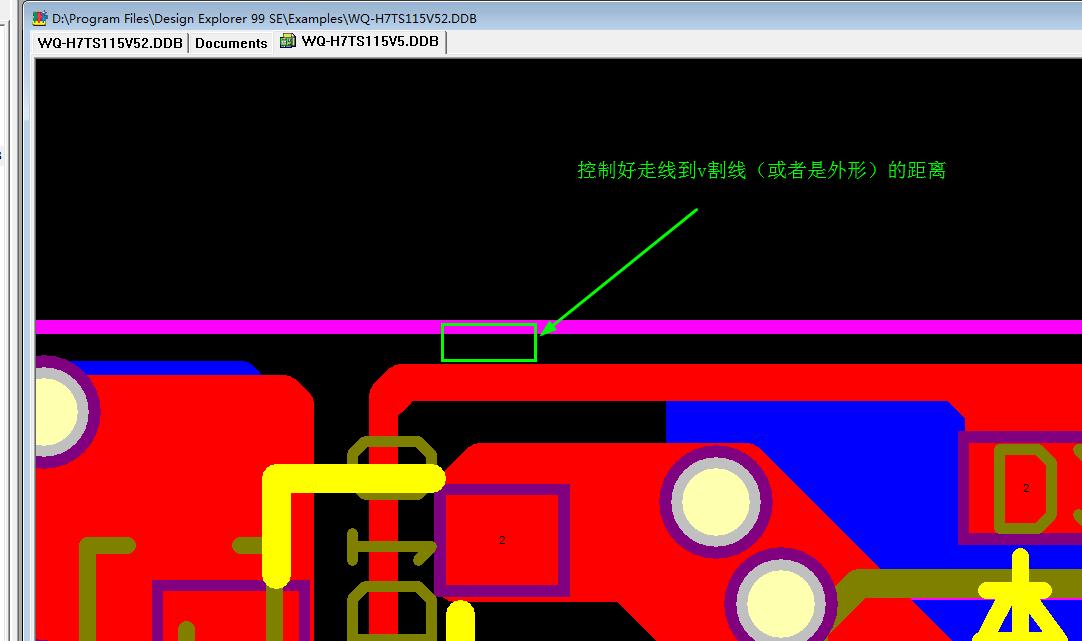 走线到切割线留足够的距离