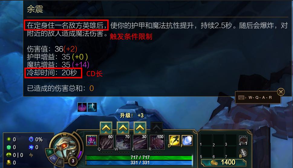 其次不灭之握在一波团里至少可以轻松触发3-4次,既能回血又能打伤害。又比如说像大虫子这类英雄,通过Q技能远距离触发余震,等到拉近距离再开始扛伤时,余震增加的双抗早就消失,价值很难全部发挥出来。
