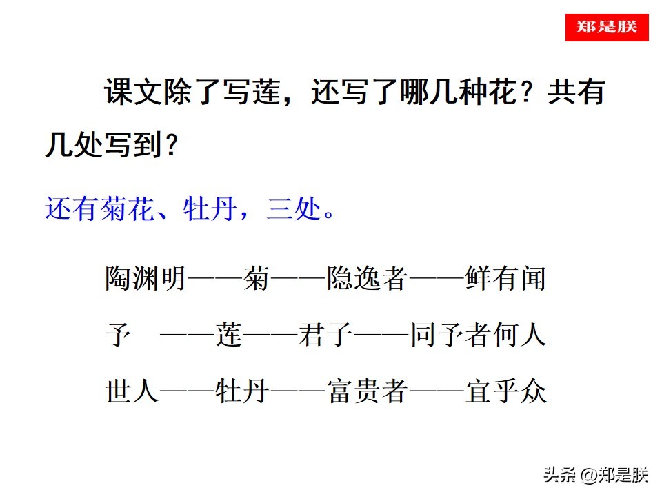 (2)菊之爱,陶后鲜有闻。莲之爱,同予者何人?