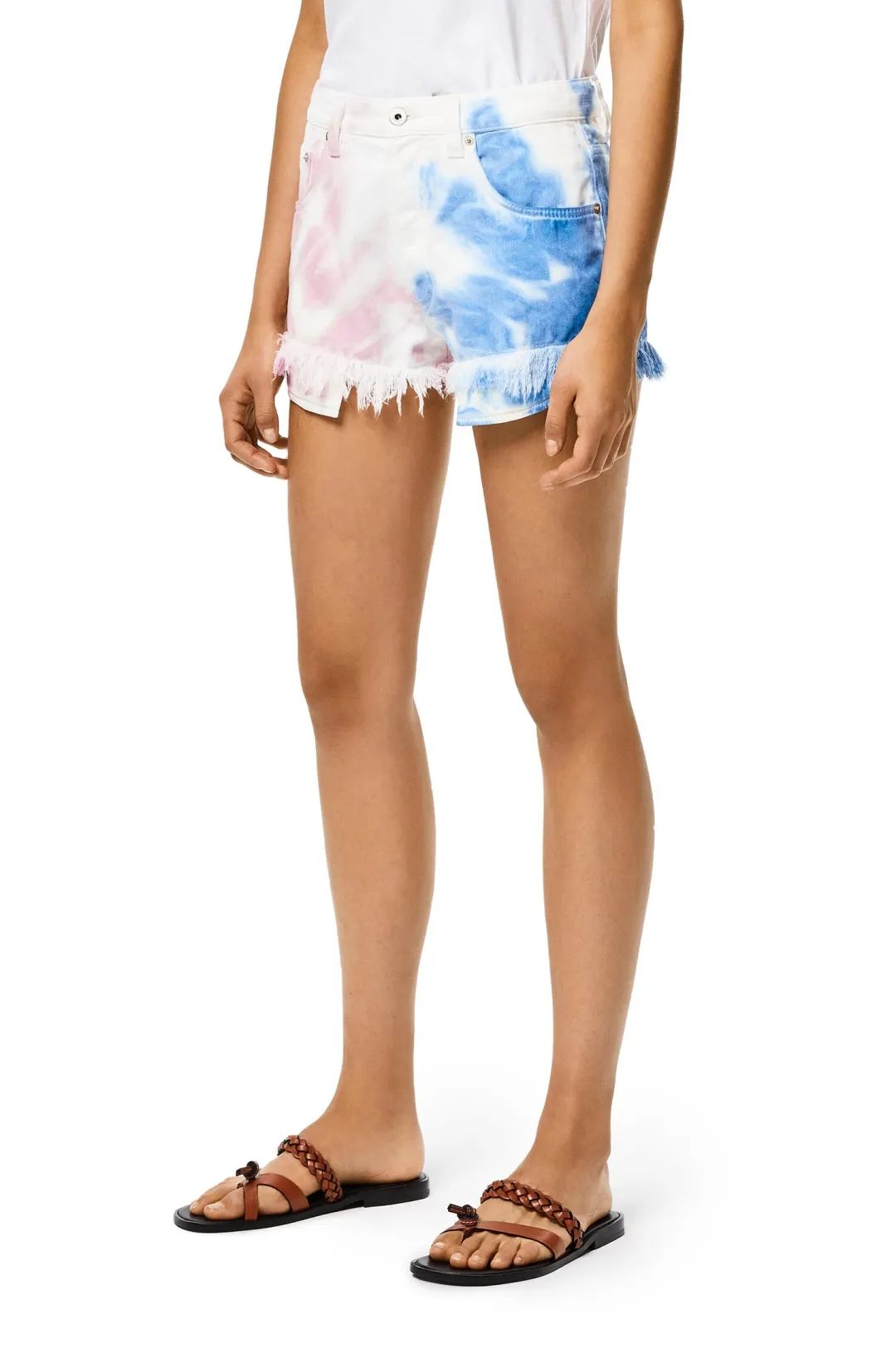 穿的这条拼色扎染毛边短裤