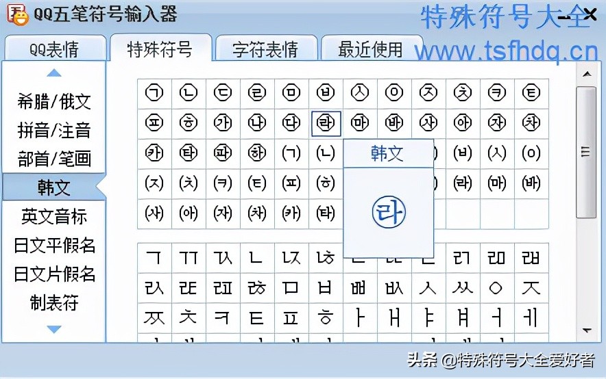 2-1:QQ输入法里面的打开符号大全的工具有些不一样,叫做【符号&表情】,其实里面符号大全分类也是差不多的,效果如下