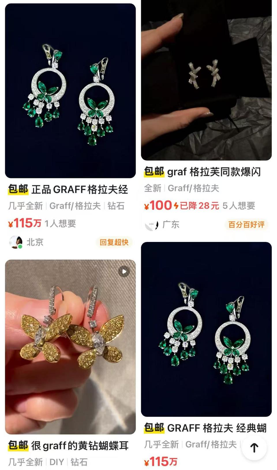 但在二手交易网站上,该款耳环二手价超过100万元。