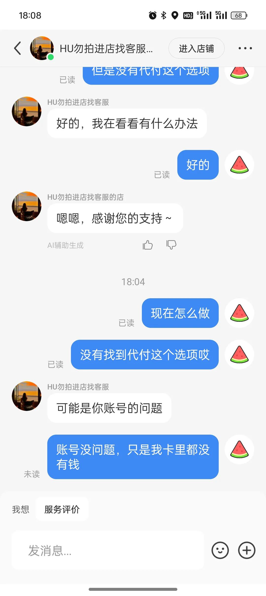 等我操作的时候我才发现,根本没有企业代付这个选项,只要你按照步骤到达人脸识别后,就会直接付款,这里就是骗你说你就是帮忙点链接而已。还好我花呗只有五十的额度,然后钱一般放在vx里,所以卡里都没有钱,所以一直付款不成功,我就问客服怎么不行,她就说是不是我账号有问题。