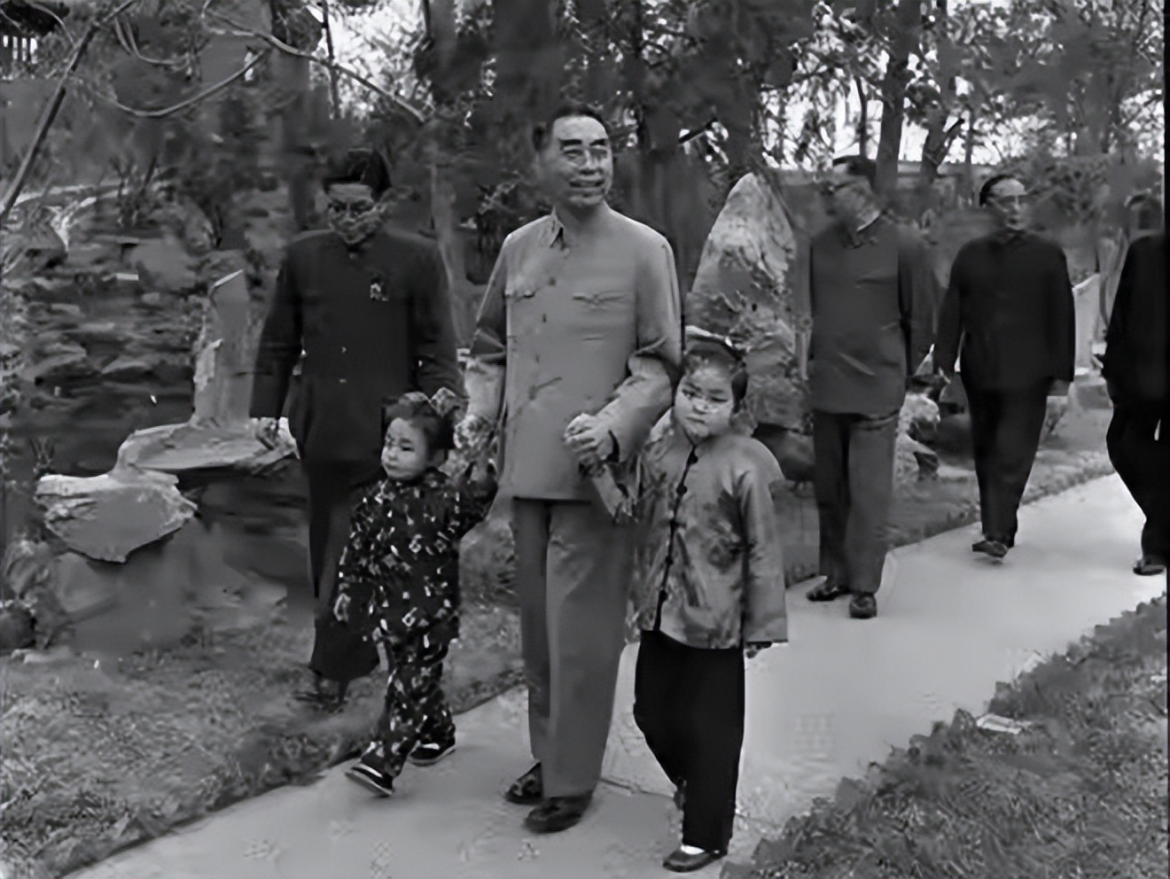 (周总理拉着隋永清姐妹)