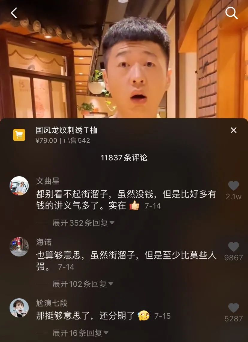 “街溜子”形象红了,一身装扮都是热议话题,李会长趁热打铁继续售卖T恤,还在商品图片上特地打上了“街溜子同款”,粉丝也是十分捧场。