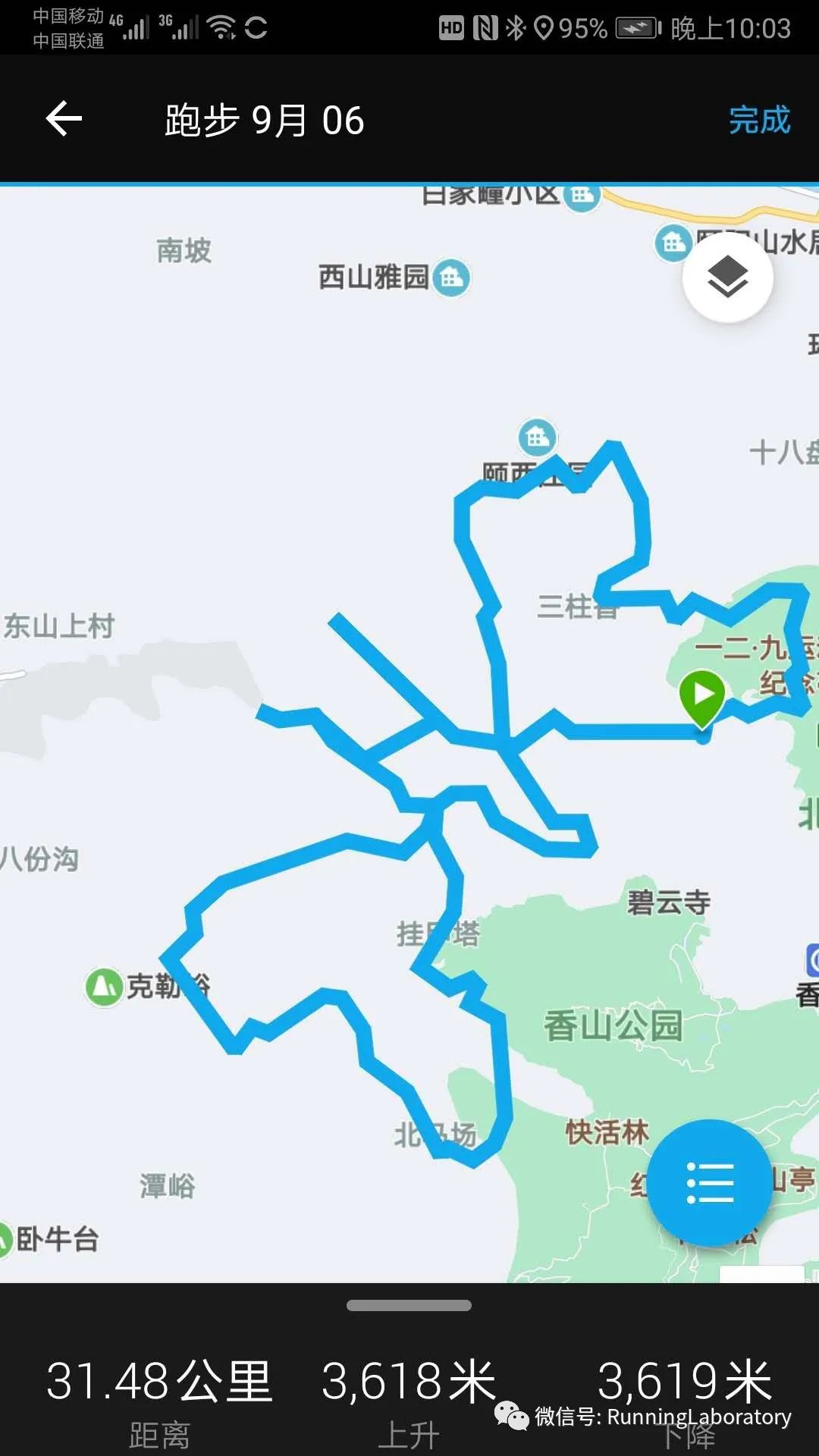 轨迹文件,是用来导航的线路轨迹文件,可以来源于别人分享的文件,网上下载的文件或者自制轨迹文件,文件后缀是.GPX。比如香山大蝴蝶线路,由一个牛人设计,如果作为一名普通跑者也想去画个蝴蝶轨迹,可以从网上下载原始轨迹,但在疫情期间,有些路不通,需要对下载轨迹进行裁剪编辑,生成一个自己需要的轨迹(轨迹编辑另外单独介绍)。