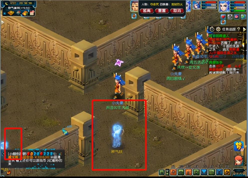 然后解散队伍5个号分开领取,记录坐标,到了下一层之后,到达对应坐标使用梦莲子即可进行战斗,也可以先队友使用梦莲子,这样场景中就会出现一个水妖,点击进入战斗即可,如此反复。