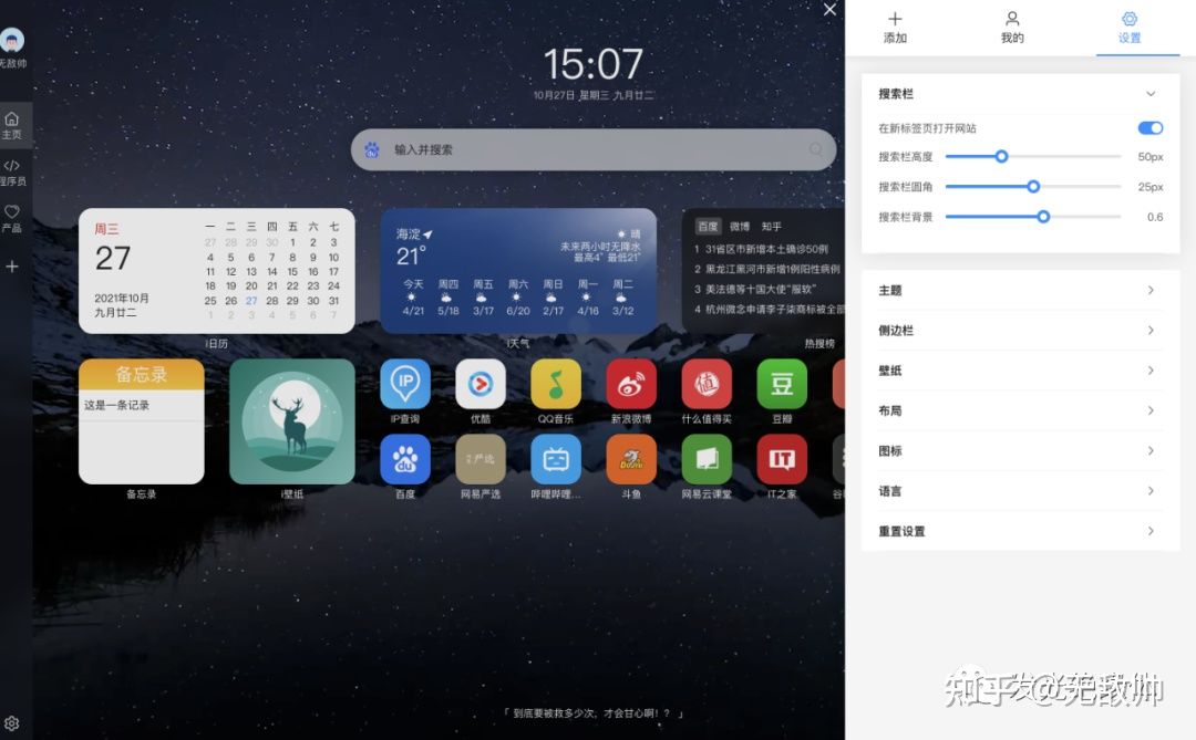我是一名前端工程师,因为用了很多浏览器默认起始页,要么广告太多,要么呆板无趣,都满足不了我对美观和实用兼顾的需求,所以就自己动手做了一个。前后我一个人从设计产品到前后端开发连着熬夜肝了一个多月上架了这个iTab新标签页,没想到意外收获了非常多用户喜欢,稳定版上线10天下载就超四千。说实话,我完全没想到会有这么多人跟我一样,苦浏览器起始页不好用久矣。