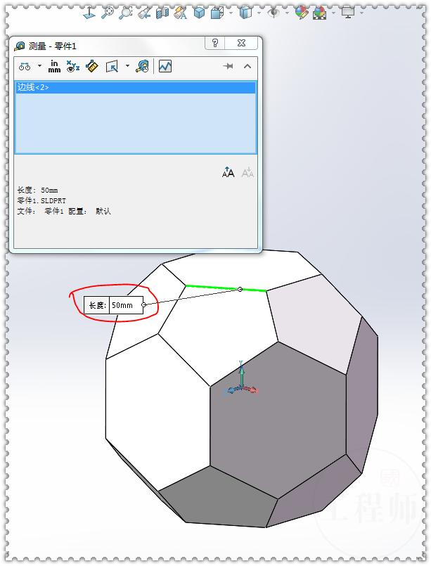 6.测量边线长度,所有边线都是:50 。
