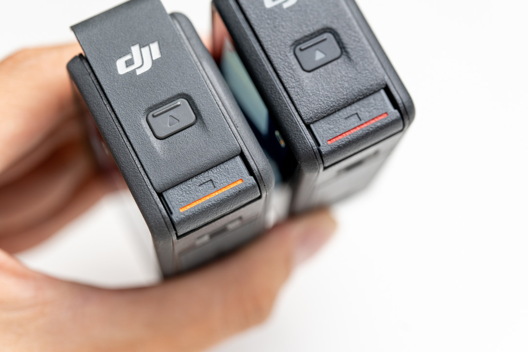 Osmo Action 4机身另一个和上一代的主要区别就是将上一代机身上的全部橙色标志换成了红色标志,比如电池仓盖的标识。