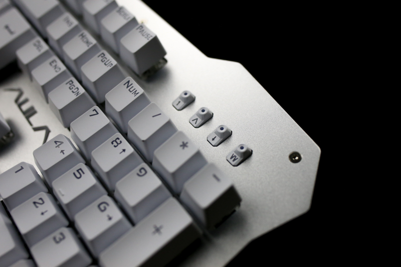 作为一款键盘,键帽设计必须是要符合人体工学的,狼蛛 收割者也不例外,从下图这个位置看去,可以发现每一排键盘的高度是不一样的,大致呈现出两边突出,中间凹陷的状态,这对于用户长期打字来说,疲劳感会大大下降。