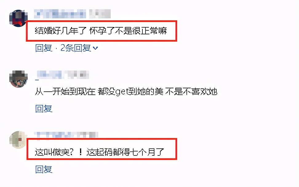 更有网友直言:“结婚好几年了,怀孕了不是很正常吗”“这肚子起码都有7个月了吧”。