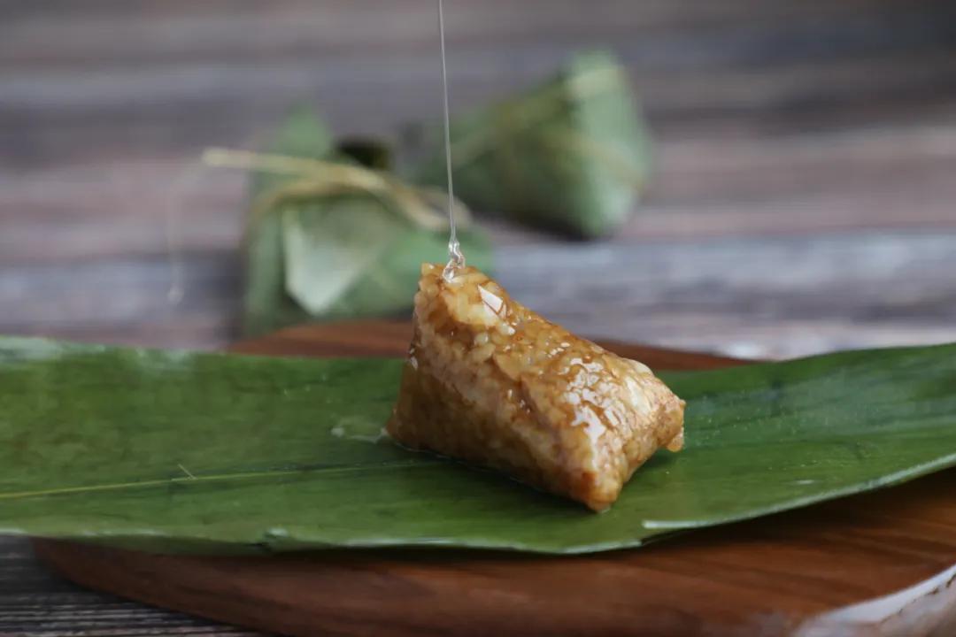 ⑤待粽子放凉一些,扒开粽叶,淋上蜂蜜即可。