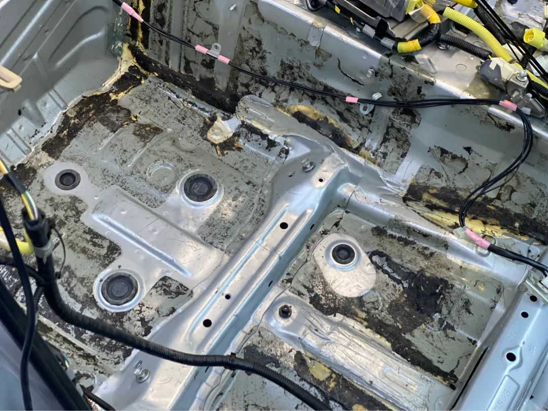 效果很棒,师傅已经开始铺设底盘隔音了。