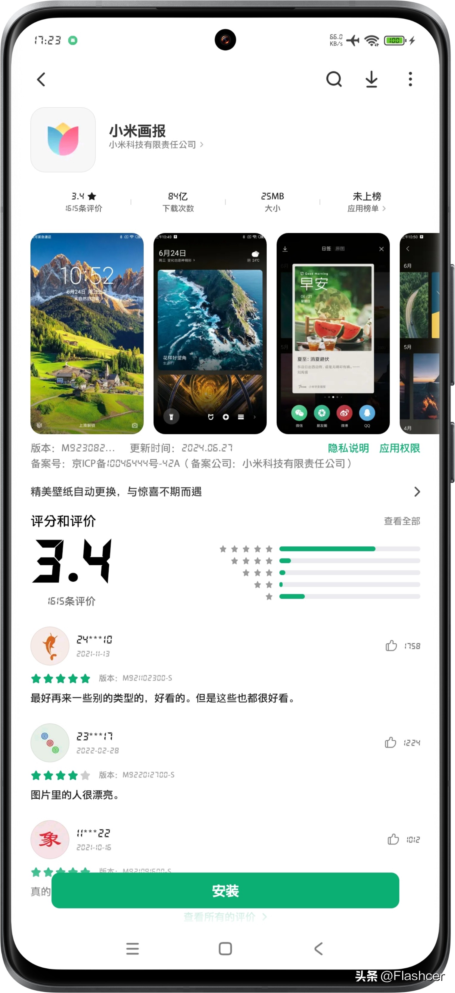 ● 【小米画报】APP是为小米锁屏定制开发的壁纸APP,可惜的是喜欢的壁纸无法直接保存到手机本地相册,再加上小米澎湃OS锁屏支持【自定义】和【模糊】等设置,这个小米画报可玩性不大。