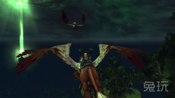 于是两个倒霉鬼坐着狮鹫就朝着那邪能风暴的大柱子径直而去。