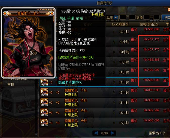 (比起传说卡算便宜了,100的四维提升不小,价格平均300W出头)