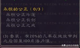 (圣骑士)永恒的公正三件套效果:有20%的几率在施放审判之后回复100点法力值。