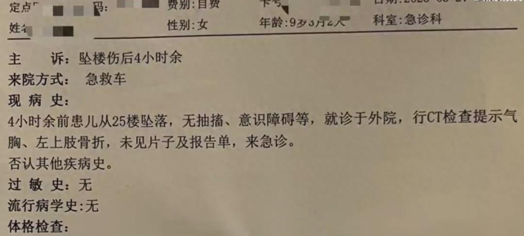 9岁女童从25楼坠落奇迹生还!孩子母亲:孩子见到我第一句话说“救我”