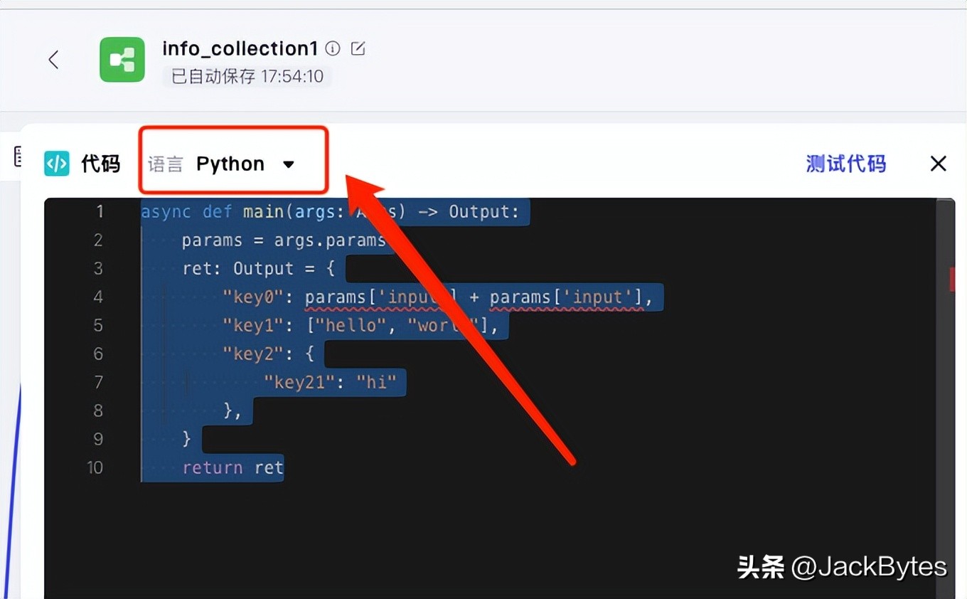 然后修改语言为Python,代码如下: