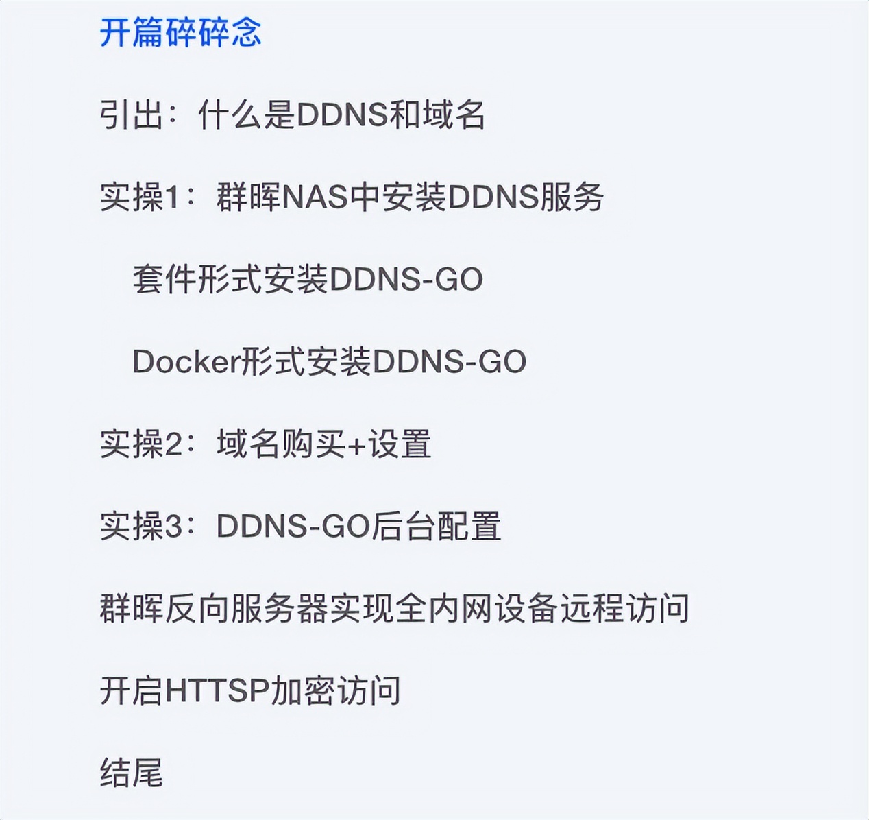网上也有许多此类文章,但没把这些内容整合起来,大部分只是演示了如何远程访问安装了DDNS-GO的NAS本身,而没说到NAS要配合群晖本身自带的反向代理功能来实现全内网设备的远程访问,所以本人同样不才,整合了这些内容,一次性给各位演示到位,展示一下如何实现这些功能(针对新手,大佬勿笑)。