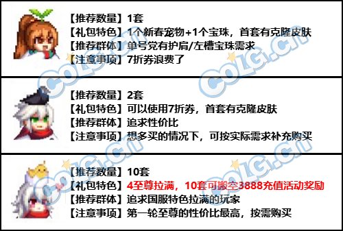 今年回血点新增可交易至尊时装(购买20套可获得),红色宠物装备数值提升相对往年价格会相对提升