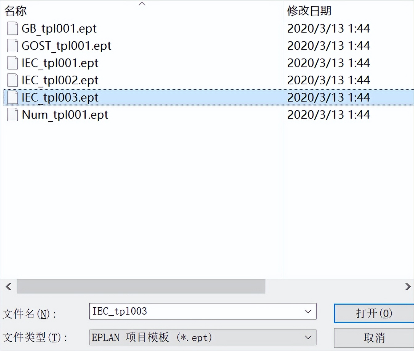 对于项目模板,又有几种标准的文件格式,有国标的,还有IEC标准的等等。而IEC_tpI001和IEC_tpI003的区别在于IEC_tpI003多了文档类型的页结构。文档类型的页结构是我们最后要导出来的数据汇总表的时候会使用到的,所以一般还是建议选中IEC_tpI003。