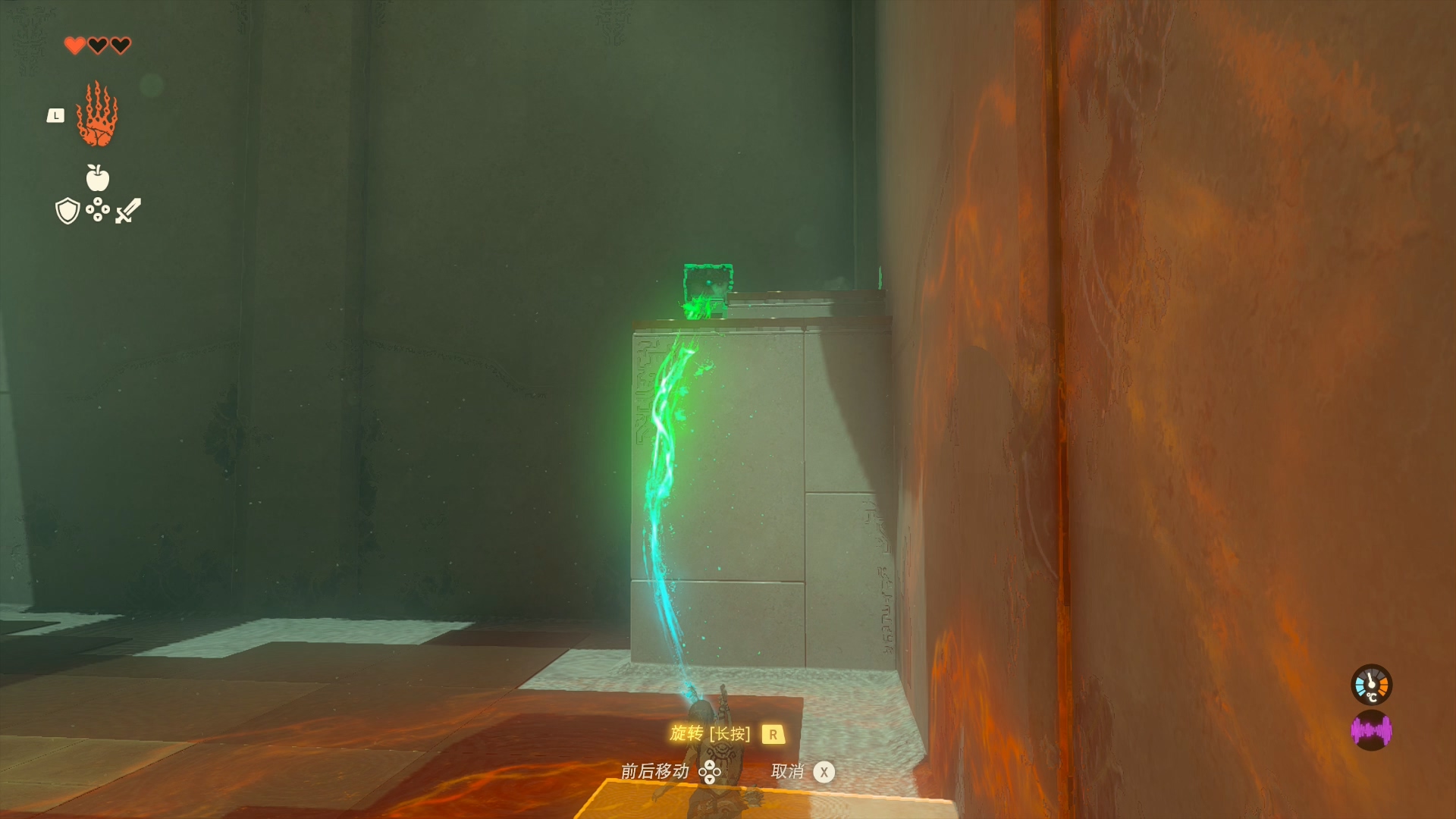 回归正题,在神庙内穿过第一个教学性质的墙体后。右侧有一高一矮两个柱子,先用通天术上到矮柱子拿宝箱。