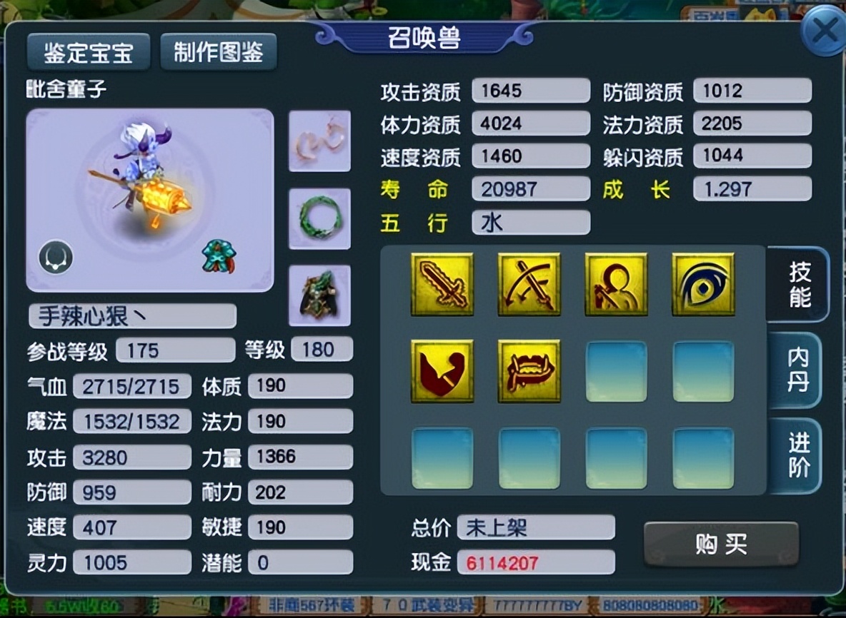 之前就有人测试过,同样资质成长、内丹和其他技能的情况下。180级bb的出其不意和高强期望是差不多的。所以预算足够肯定上高强,别说全力了,多技能耐攻童子也要打高级强力,感知什么的反而优先级靠后,个人认为175不考虑特殊技能的情况下,技能可以这样配置。