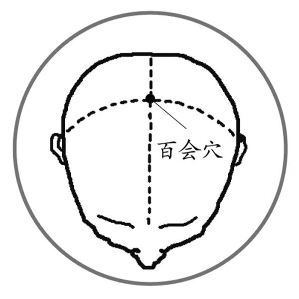 取穴:头顶正中线与两耳尖连线的交点处。