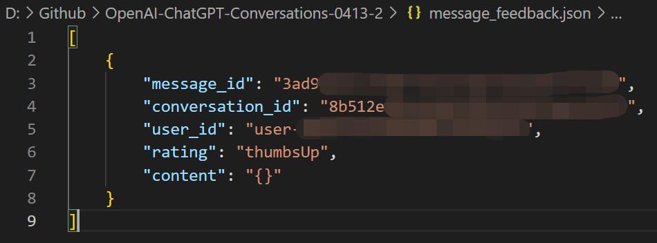 在message_feedback.json中,它给你提供的是你曾经在对话的某些回答中提供了反馈的数据记录。