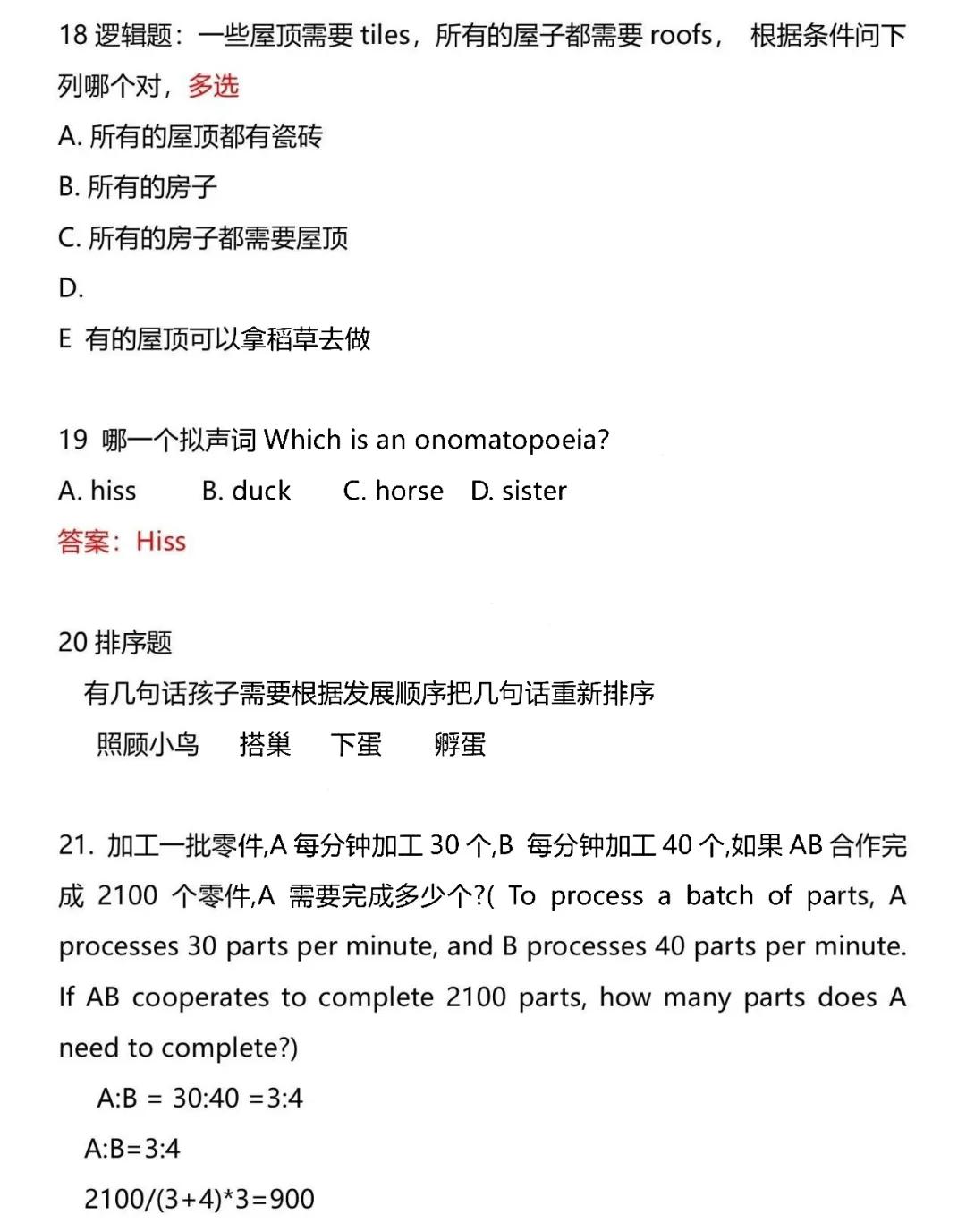 语、数、英三科都有,还有地方历史,均采用英文出题,值得注意的是今年小外增加了考题的形式,采用播放音乐或视频的模式出题,综合考量学生的素养。以下题目根据考生回忆汇总,下方版本为便于理解采用中文回忆版。面测题目关键点