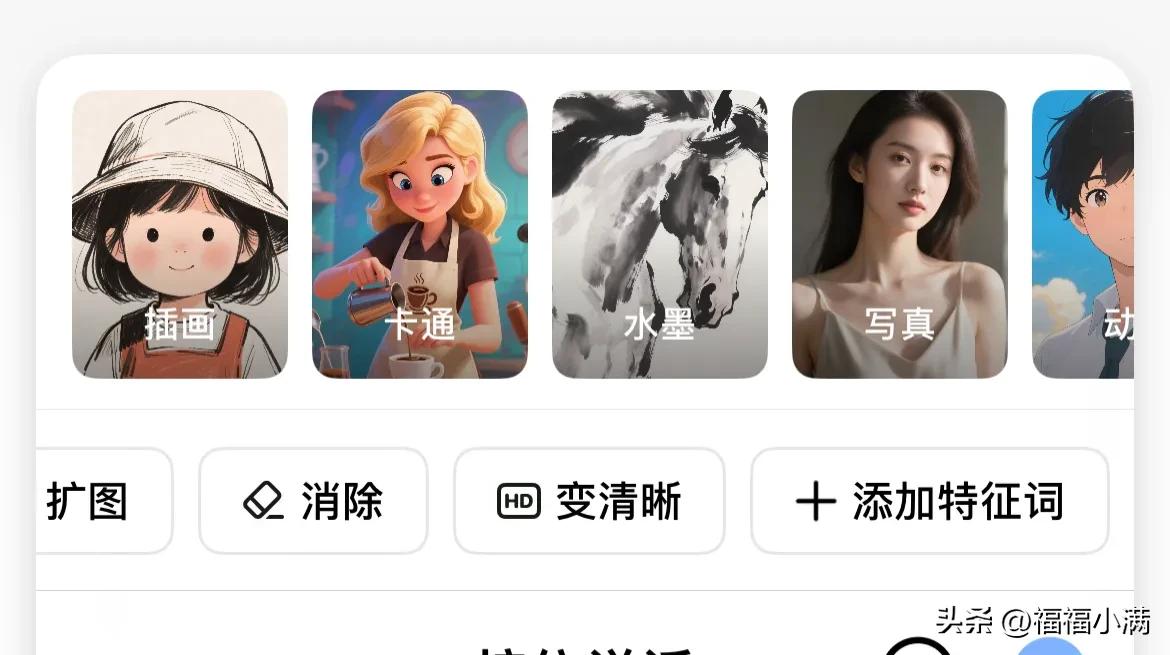 豆包的AI生图功能很强大,消除只是她的一个小小功能,还有扩图,变清晰等,