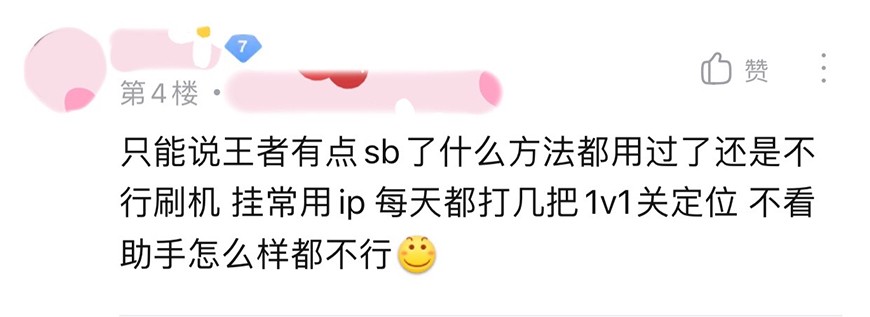 某一路人开玩笑道:王者本来就有elo机制,输赢都有安排,找代练逆天而行,不被检测都难。