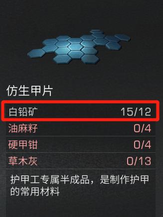 白铅矿&重晶石用途:白铅矿、重晶石是制作100级半成品的材料,白铅矿是制作非晶合金、仿生甲片、珊瑚绒的必备材料,其中仿生甲片为护甲工专属半成品。