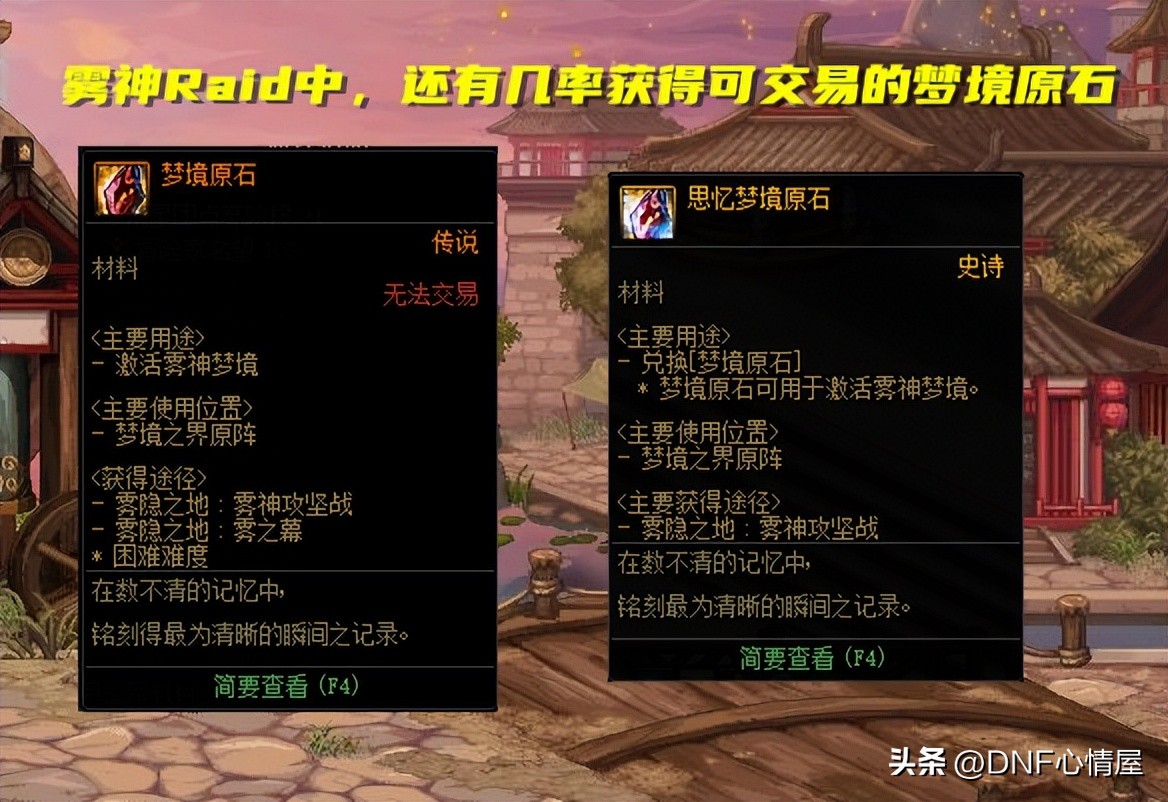 每次打雾神团本,可获得2个“梦境原石”材料,不从拍卖行购买的前提下,需要的周期挺长的。