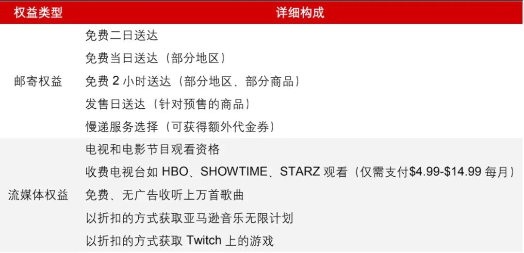 - 亚马逊不断将新业务加入体系迭代,权益日趋丰富,不断强化对新会员的吸引和对存量会员的粘性;