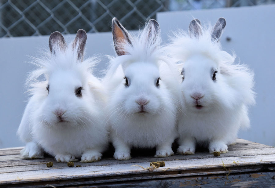 英国萨默塞特,三只兔子的毛发像雪一样白,拥有和职业模特一样大大的眼睛和长长的睫毛,这三只漂亮的兔子是皇家防止虐待动物协会照顾的数千只动物中的成员。
