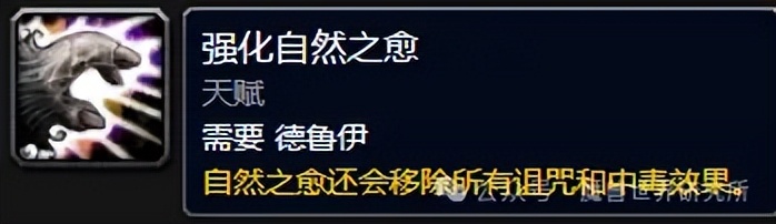 恢复德鲁伊在达到 10 级时,现在从职业天赋树中学习强化自然之愈。