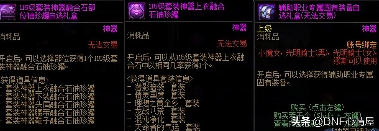 (1)商店可兑换各种道具,包括限定宠物、115级套装神器融合石部位袖珍罐自选礼盒、辅助职业专属固有装备、天帷巨兽眼泪、附魔宝珠等等。
