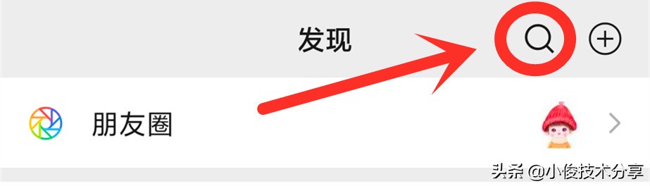 我们点击放大镜图标之后,直接点击下面的【朋友圈】功能