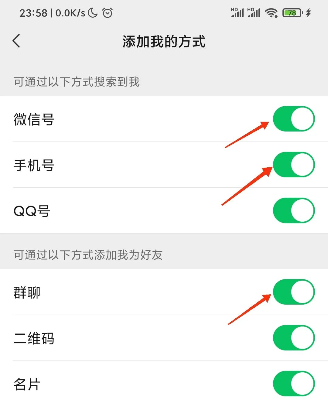 打开微信,依次进入【我-设置-朋友权限-添加我的方式】,在这里可以看到6种添加微信好友的方法,仔细审视每一项添加方式,并根据自己的实际情况进行关闭或保留。例如,如果你不希望陌生人通过手机号或QQ号找到你,就可以关闭这些选项。同时,对于通过群聊添加好友的方式也建议仅在信任的环境下使用,并定期检查自己的好友列表,删除那些不明来源的好友。